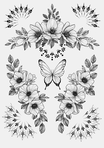 Das exklusive Bundle mit ausgewählten Motiven der Künstlerin Anastasiia Brovarnik, bekannt als Anna Bravo. Ihren kreativen Mittelpunkt hat sie im Herzen von Paris, wo sie in ihrem privaten Studio „MouseDom“ florale Fineline-Tattoos entwirft, die sich besonders harmonisch an die natürliche Form des Körpers anpassen. Der Stil von Anna Bravo ist geprägt von feinen Linien, ästhetischen Pflanzenmotiven und einer besonderen Sensibilität für Proportion und Eleganz. Ihre Kompositionen wirken wie zarte Illustrationen auf der Haut und sind gleichzeitig präzise, modern und zeitlos. Dieses Bundle vereint mehrere ihrer beliebtesten floralen Designs. Ideal für alle, die filigrane Motive und natürliche Formen lieben. Hinweis zur Anwendung: Tattoo ausschneiden, Schutzfolie abziehen, Motiv mit der Bildseite auf die Haut legen, anfeuchten, ca. 20 Sekunden andrücken und vorsichtig abziehen.